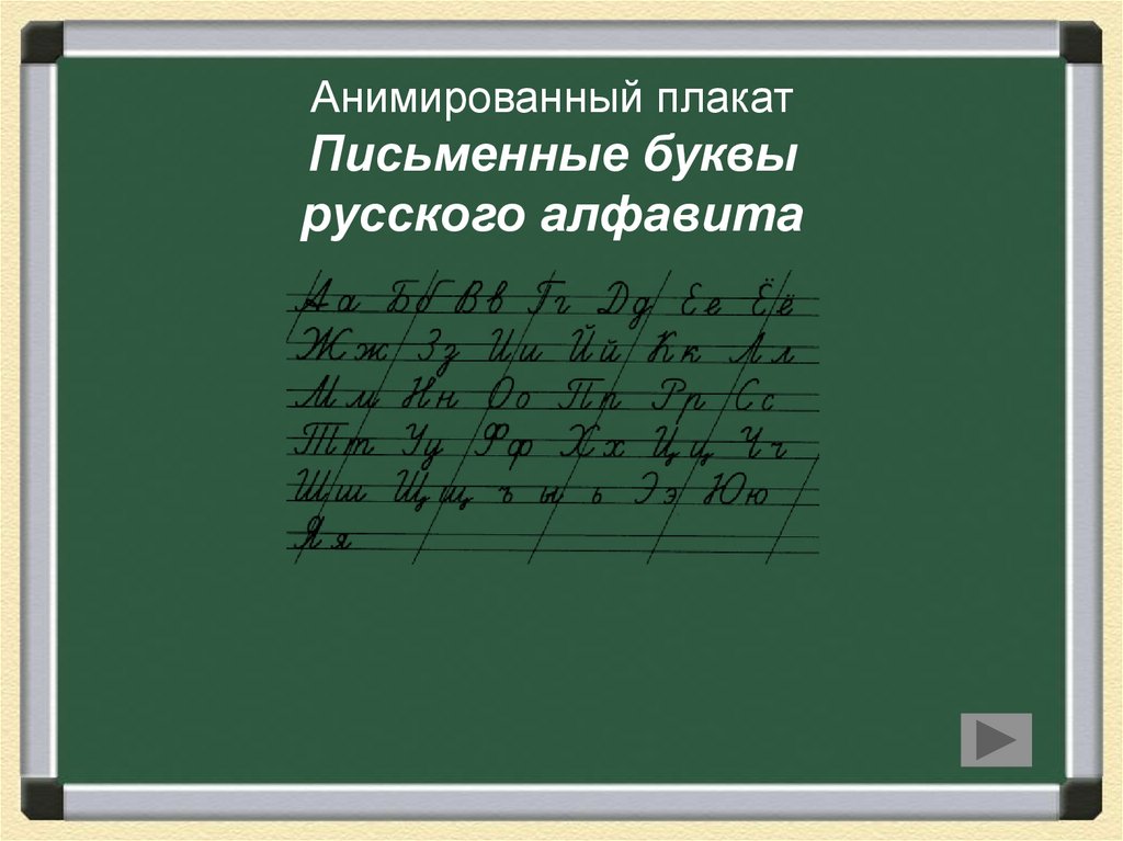 1. Анимированный плакат Письменные буквы русского алфавита