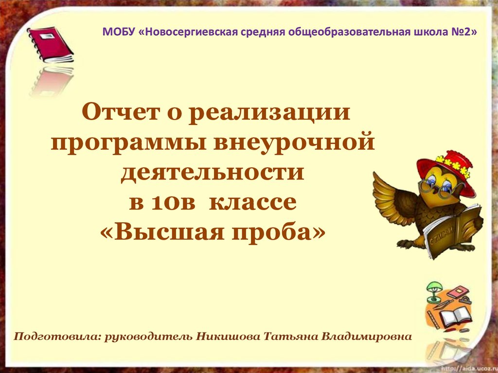 МОБУ «Новосергиевская средняя общеобразовательная школа №2»Отчет о реализации