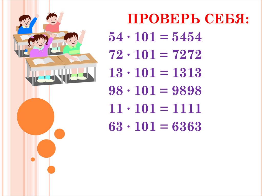 ПРОВЕРЬ СЕБЯ:54 ∙ 101 = 5454