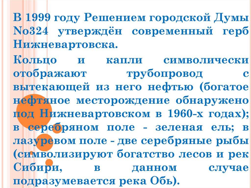 В 1999 году Решением городской ДумыNo324 утверждён современный герб