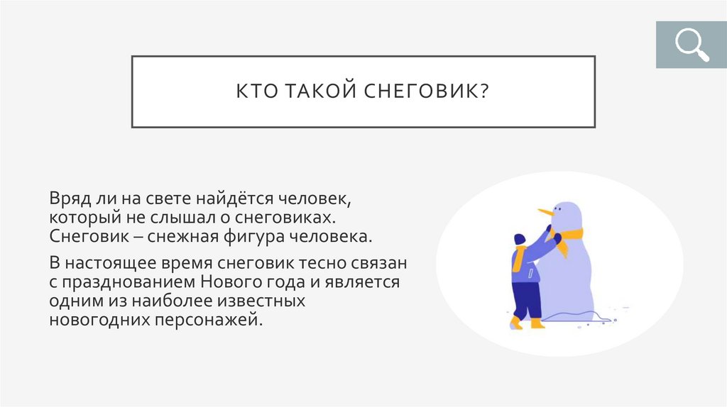 КТО ТАКОЙ СНЕГОВИК?Вряд ли на свете найдётся человек,