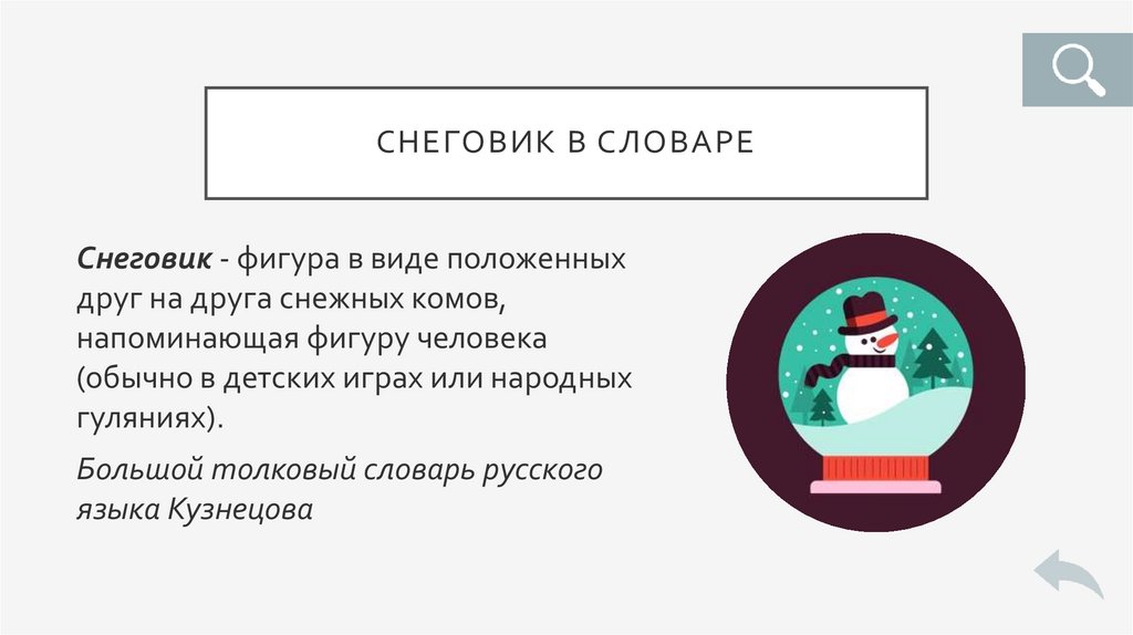 СНЕГОВИК В СЛОВАРЕСнеговик - фигура в виде положенных