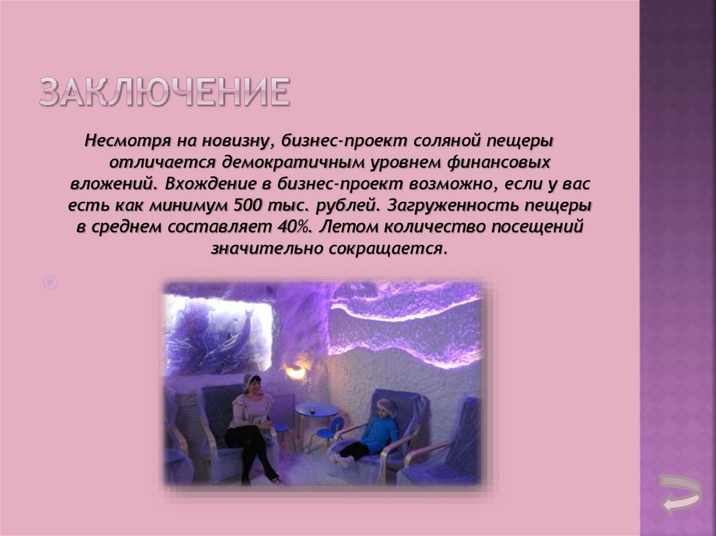 Несмотря на новизну, бизнес-проект соляной пещерыотличается демократичным уровнем финансовых