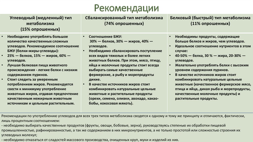 РекомендацииУглеводный (медленный) тип