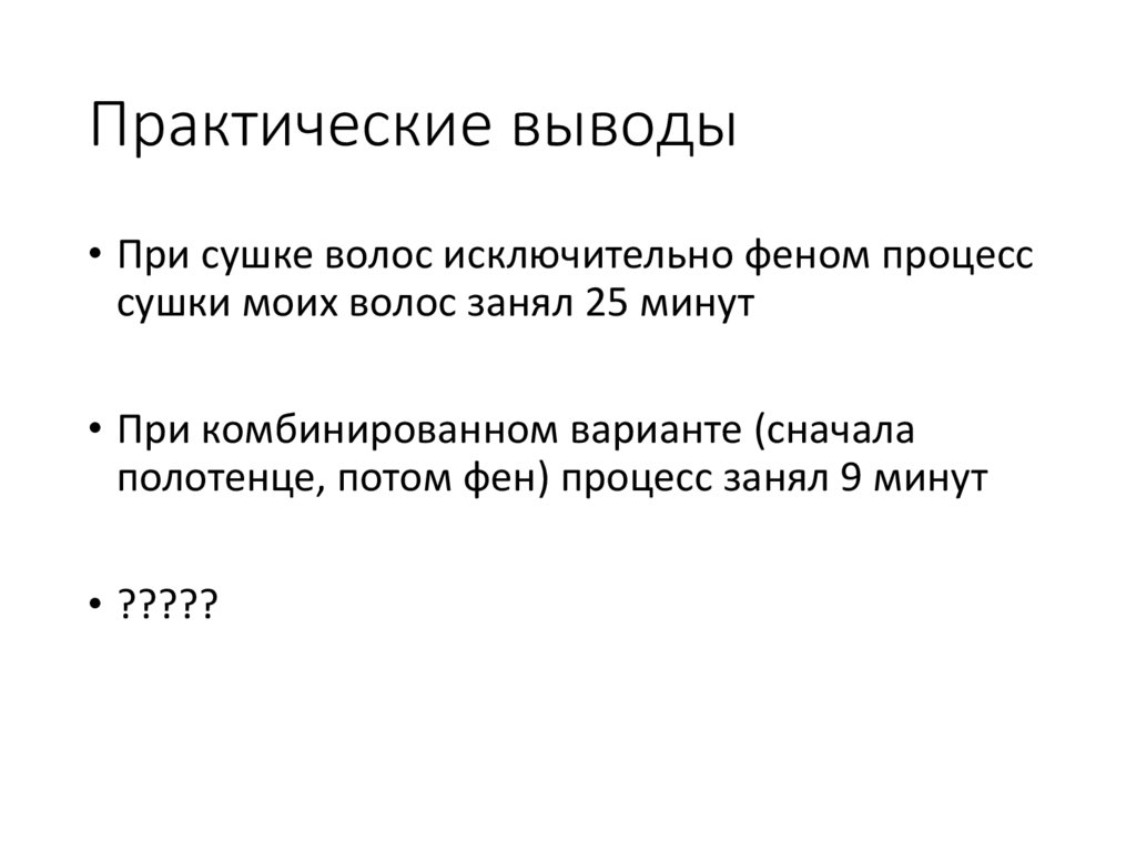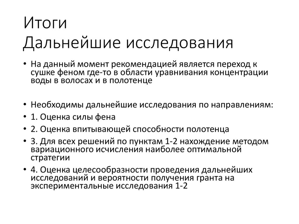 • Волосы сухи <=> f'(t1) ->0 & f'(t2) ->0, где t1 и t2 соответствующие точки для фена и для полотенца. То