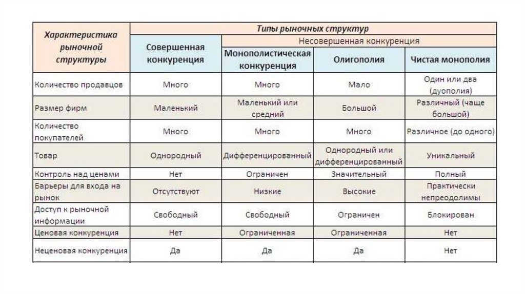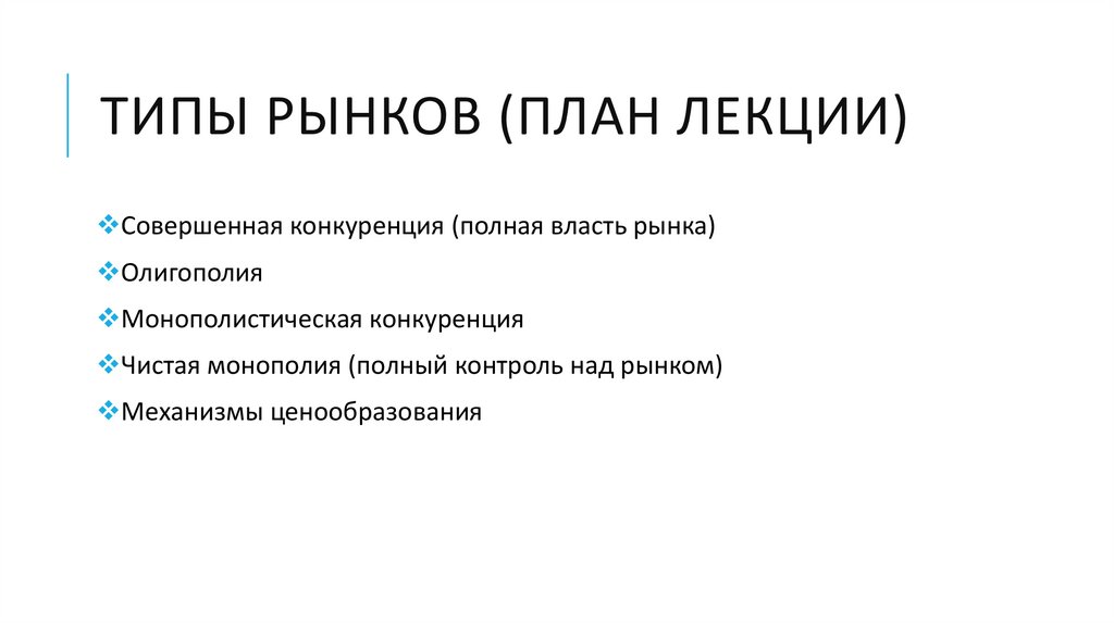 ТИПЫ РЫНКОВ (ПЛАН ЛЕКЦИИ)Совершенная конкуренция (полная власть рынка)