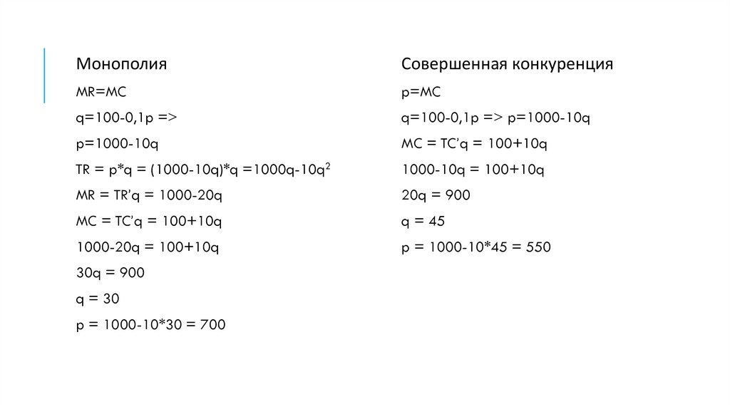 2) Как изменится ответ на вопрос, если на рынке будет совершенная конкуренция?