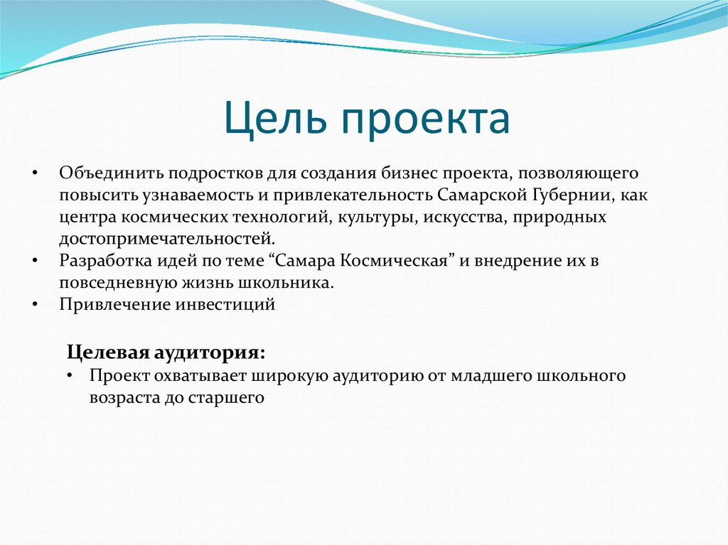 Цель проектаОбъединить подростков для создания бизнес проекта, позволяющего