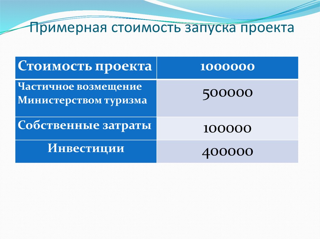 Примерная стоимость запуска проектаСтоимость проекта