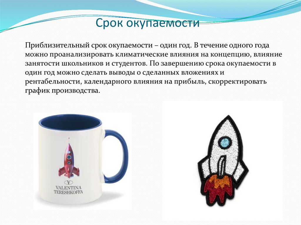 Срок окупаемостиПриблизительный срок окупаемости – один год. В течение одного года