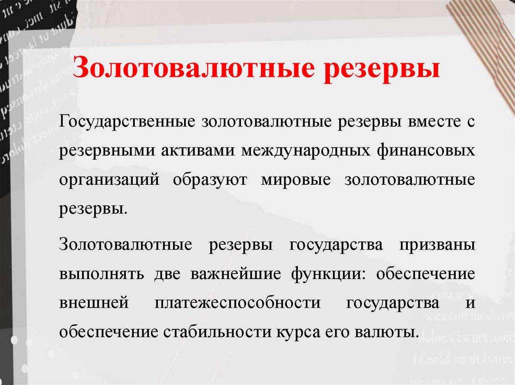 Золотовалютные резервыГосударственные золотовалютные резервы вместе с
