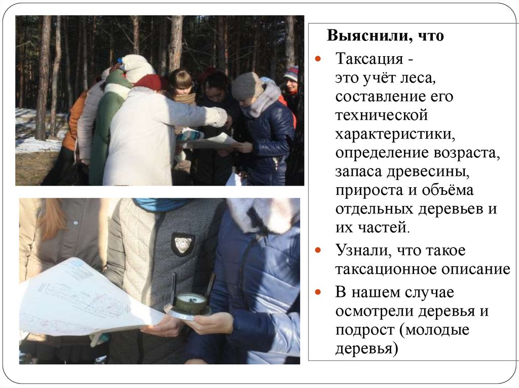 Выяснили, чтоТаксация это учёт леса,
