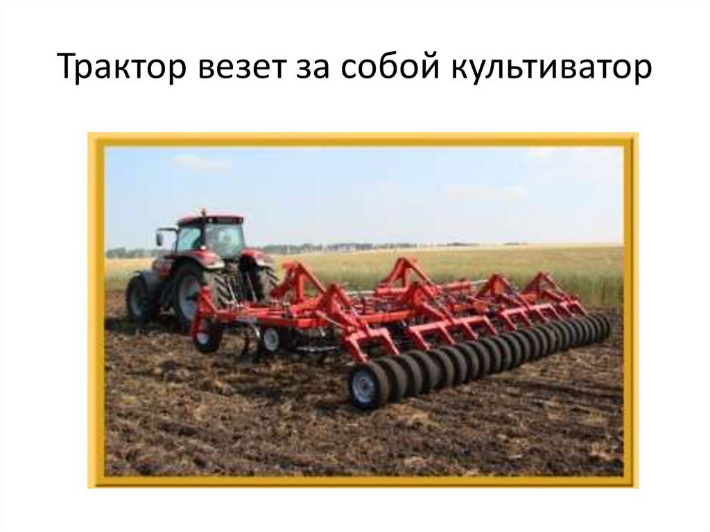 Трактор везет за собой культиватор6.
