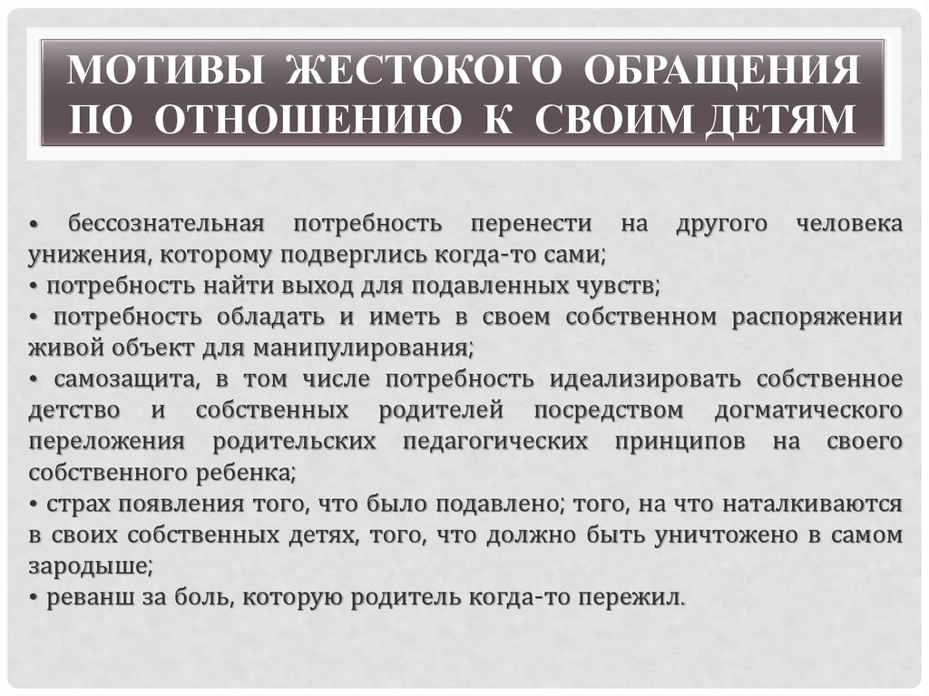 МОТИВЫ ЖЕСТОКОГО ОБРАЩЕНИЯПО ОТНОШЕНИЮ К СВОИМ ДЕТЯМ