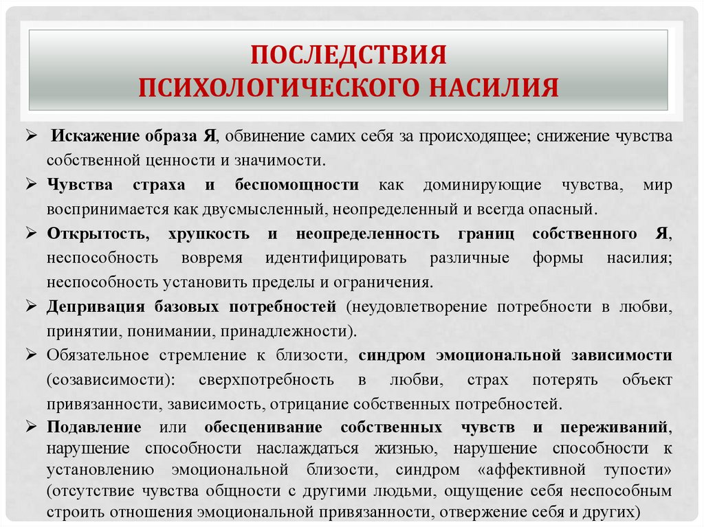ПОСЛЕДСТВИЯПСИХОЛОГИЧЕСКОГО НАСИЛИЯ