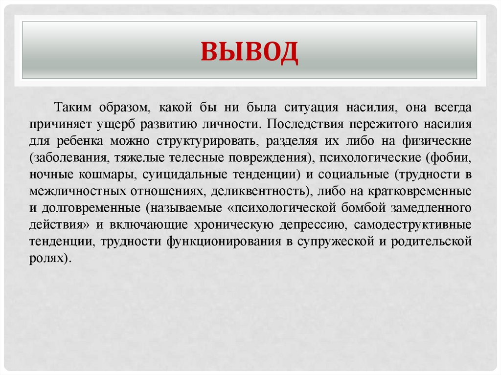 ВЫВОДТаким образом, какой бы ни была ситуация насилия, она всегда
