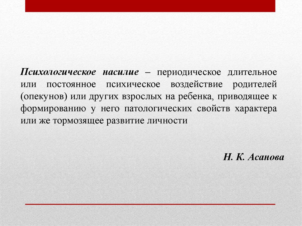 Психологическое насилие – периодическое длительноеили постоянное психическое воздействие родителей