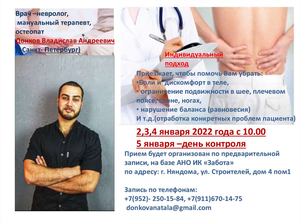 Врач –невролог,мануальный терапевт,