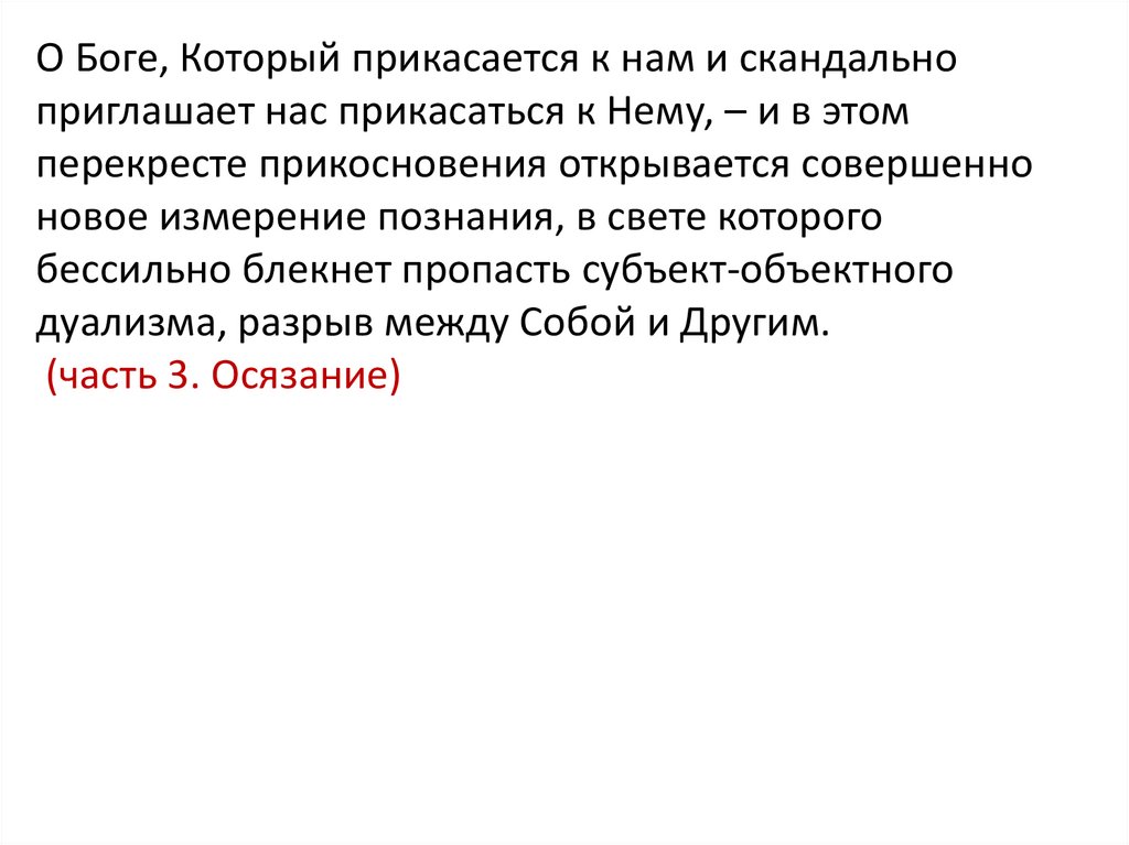О Боге, Который прикасается к нам и скандальноприглашает нас прикасаться к Нему, – и в этом