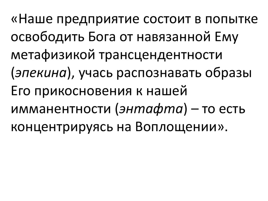 «Наше предприятие состоит в попыткеосвободить Бога от навязанной Ему