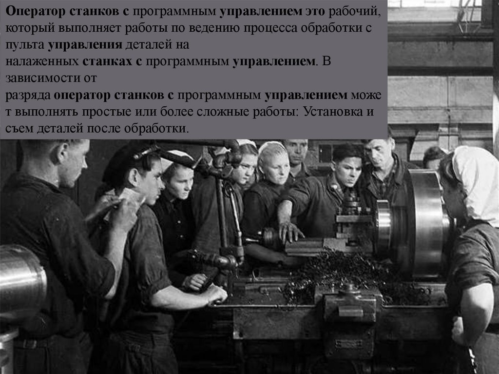 Оператор станков с программным управлением это рабочий,который выполняет работы по ведению процесса обработки с