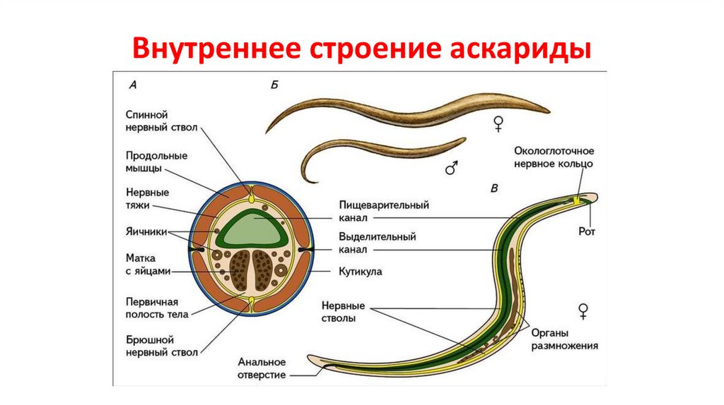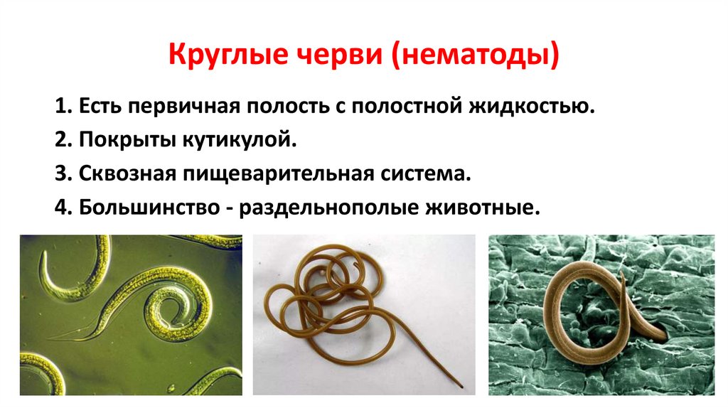 Круглые черви (нематоды)1. Есть первичная полость с полостной жидкостью.