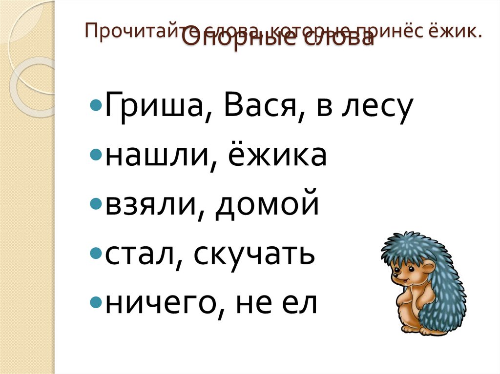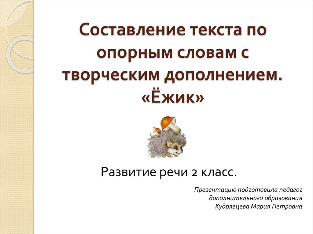 Составление текста по опорным словам с творческим дополнением. «Ёжик»