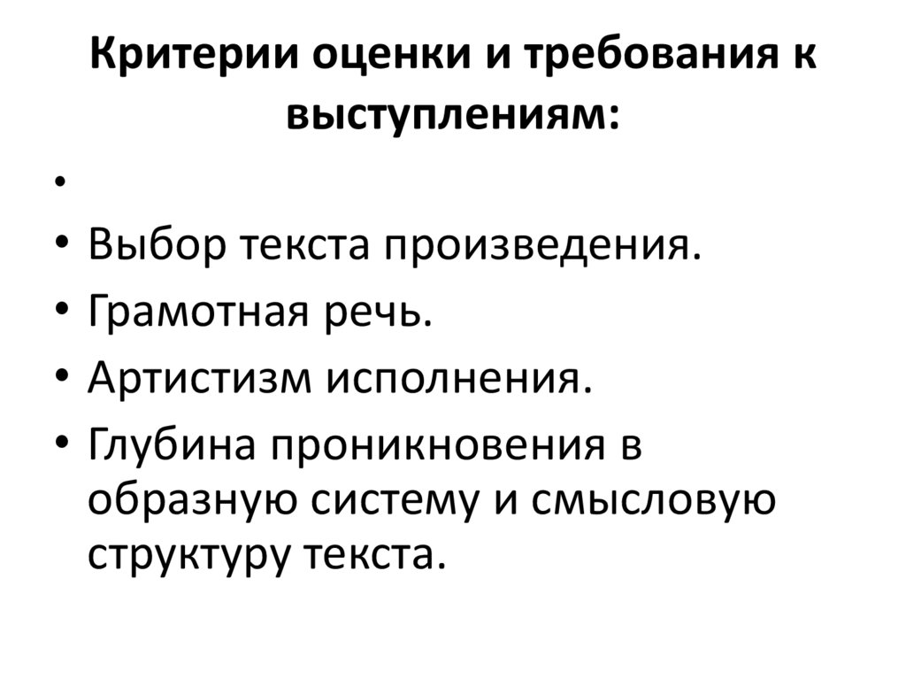 Критерии оценки и требования квыступлениям: