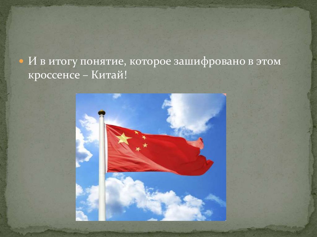 И в итогу понятие, которое зашифровано в этомкроссенсе – Китай!