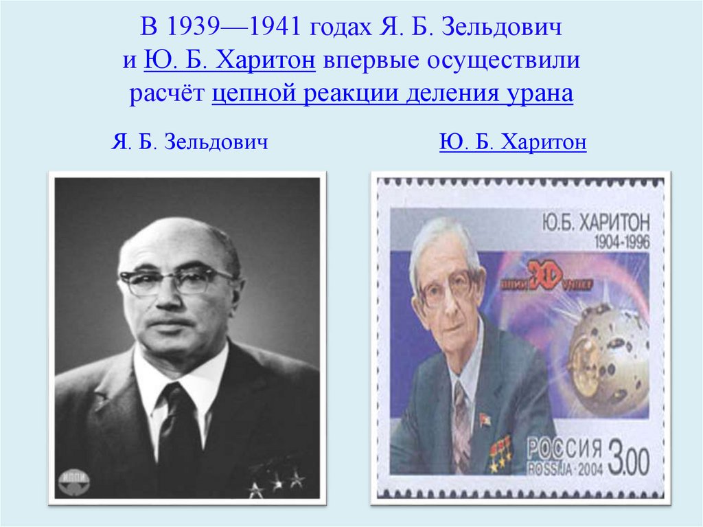 В 1939—1941 годах Я. Б. Зельдовичи Ю. Б. Харитон впервые осуществили