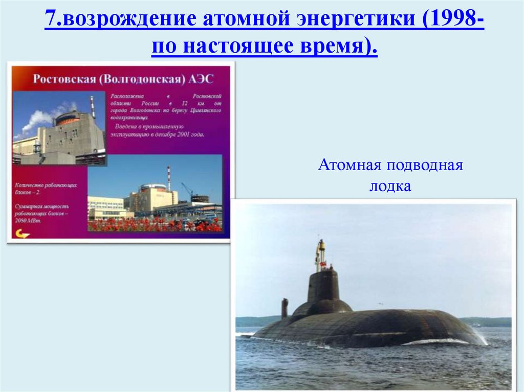 7.возрождение атомной энергетики (1998по настоящее время).Атомная подводная
