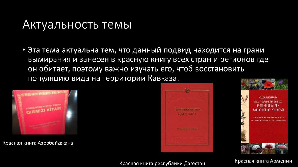 Актуальность темы• Эта тема актуальна тем, что данный подвид находится на грани