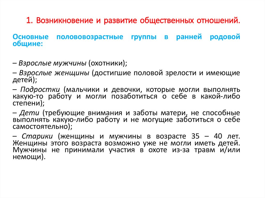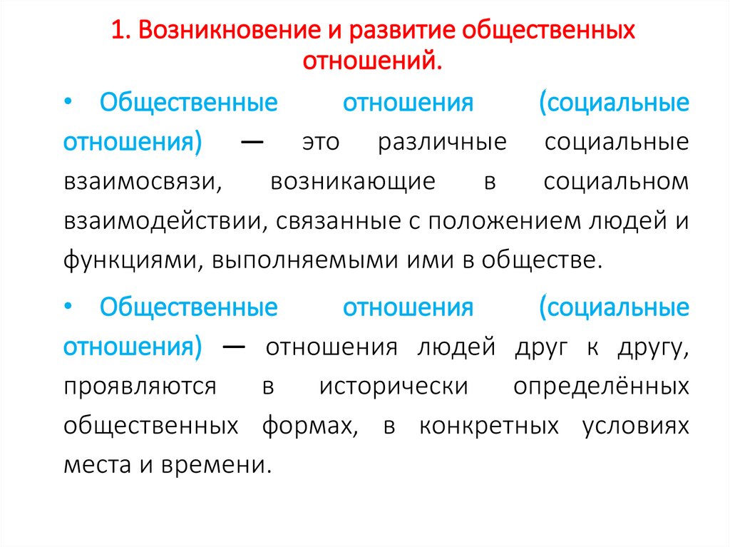 1. Возникновение и развитие общественных отношений.