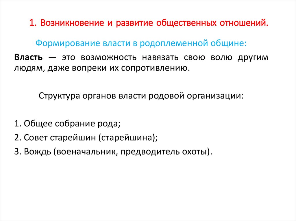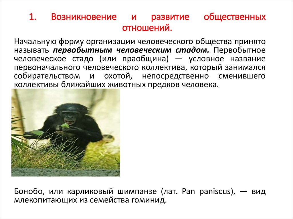 1. Возникновение и развитие общественныхотношений.