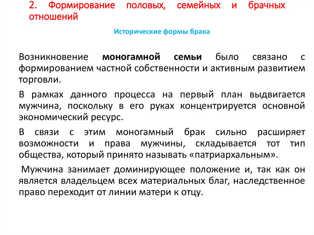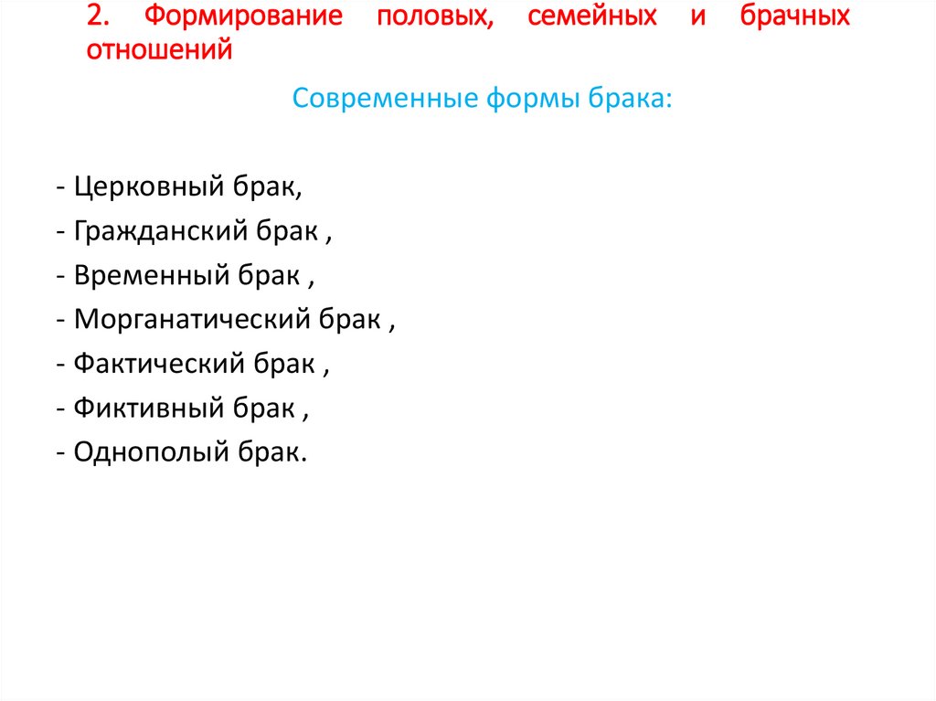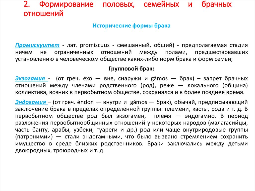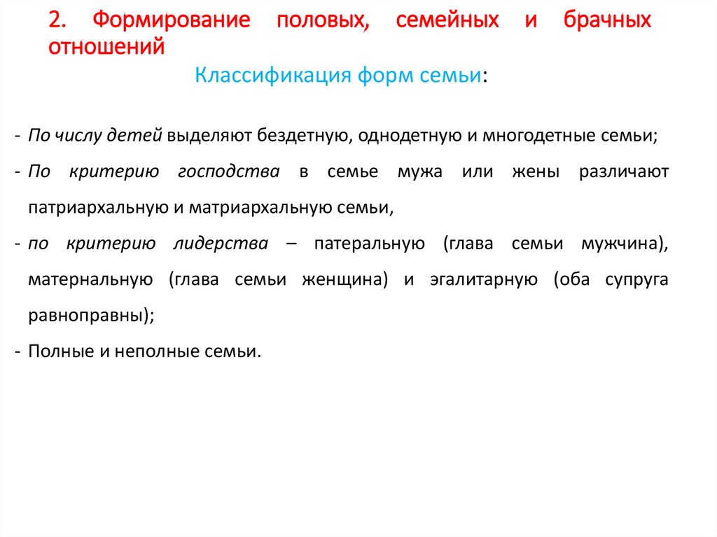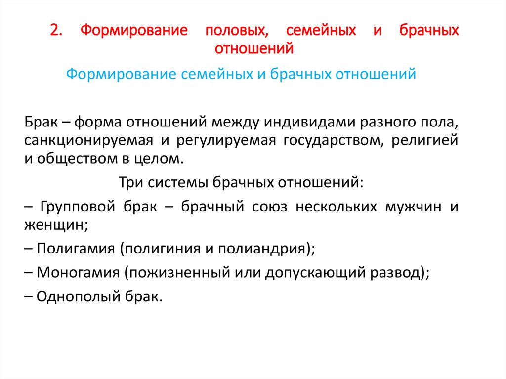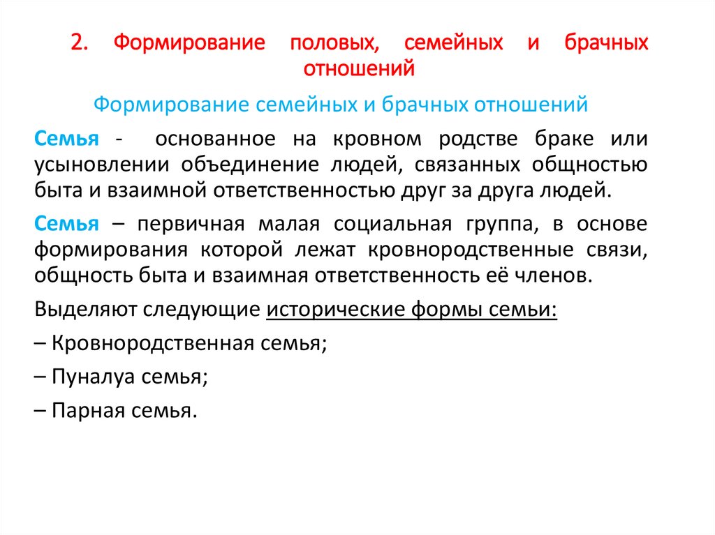 2. Формирование половых, семейныхотношений
