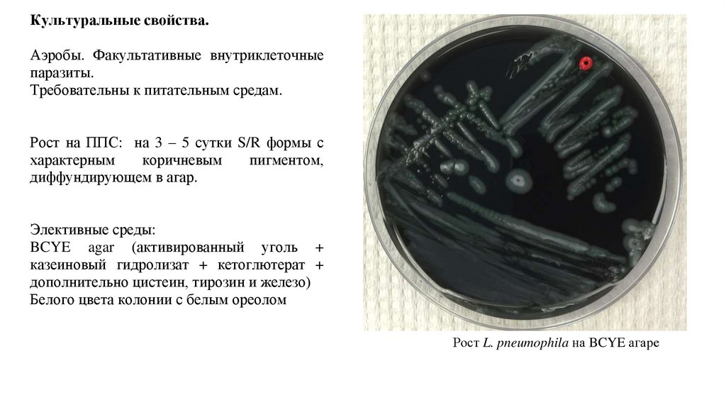 Рост L. pneumophila на BCYE агаре