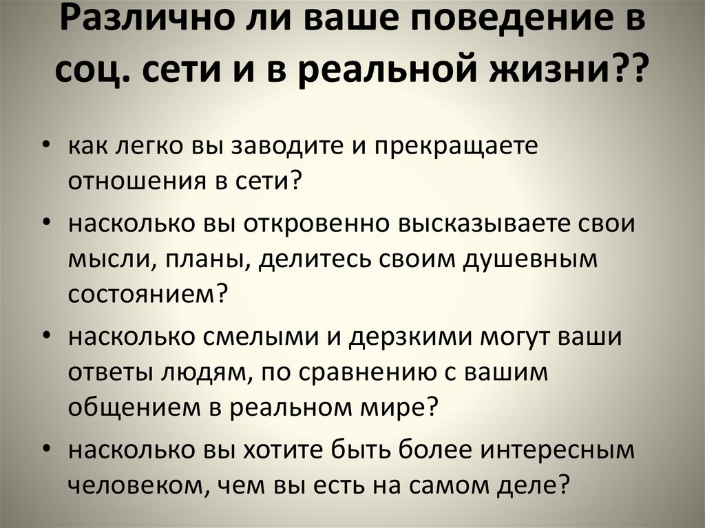 Различно ли ваше поведение всоц. сети и в реальной жизни??
