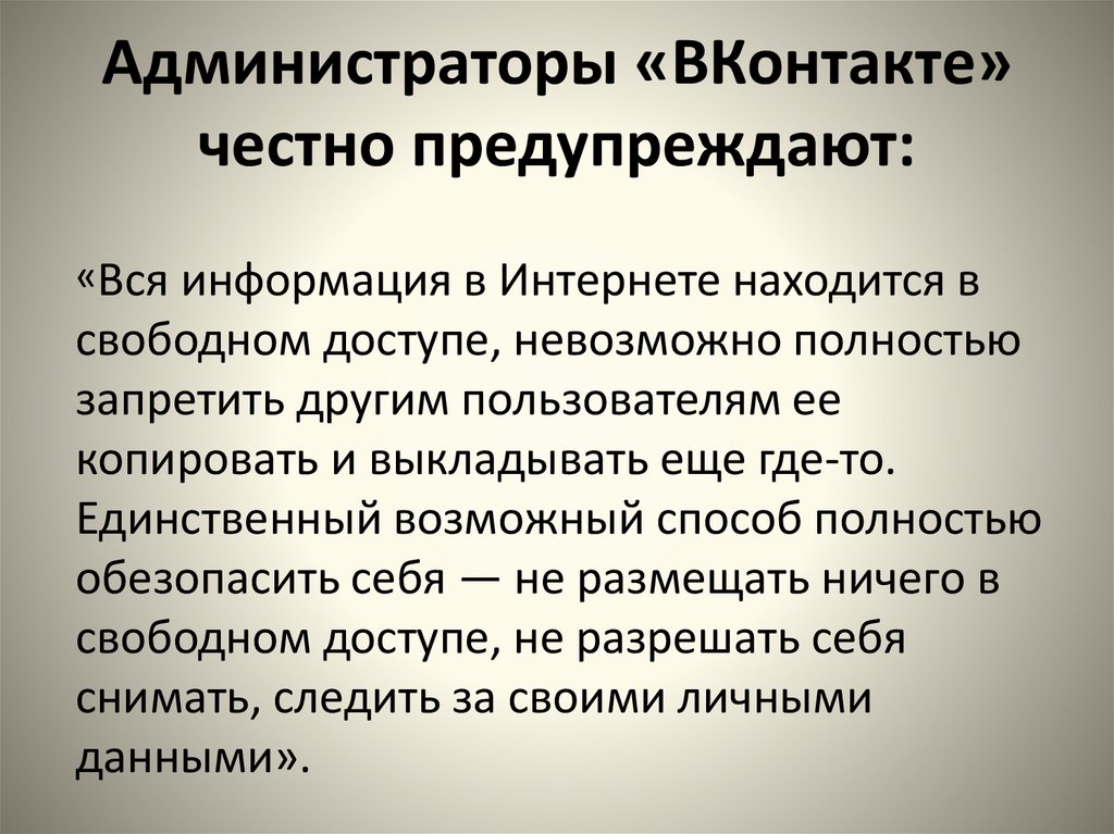 Администраторы «ВКонтакте»честно предупреждают: