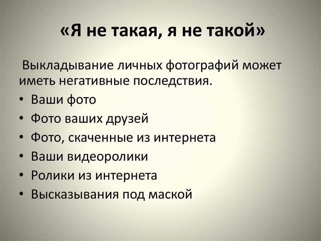 «Я не такая, я не такой»Выкладывание личных фотографий может