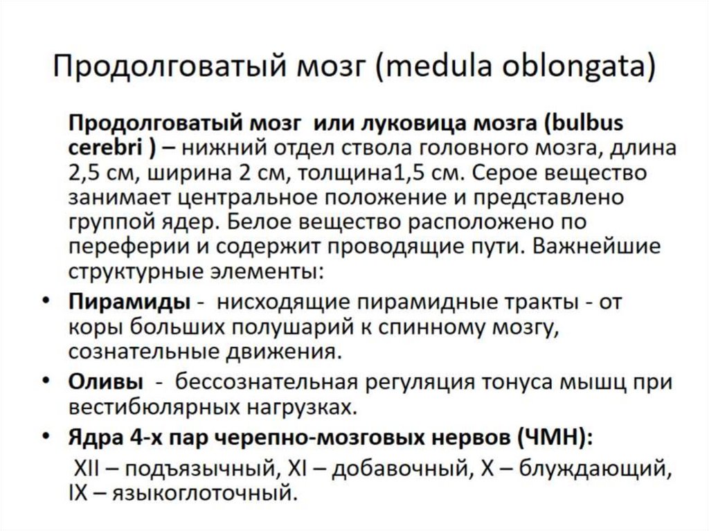 Строение головного мозга. Продолговатый мозг. Задний мозг. Лекция № 23