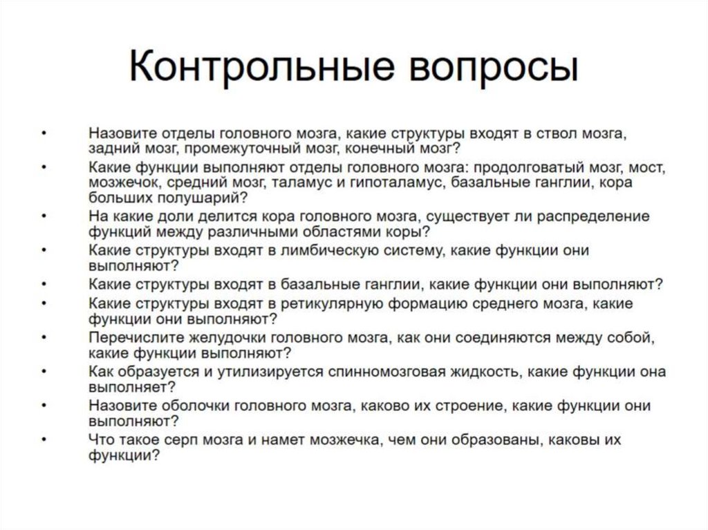 Передний мозг. Промежуточный мозг. Конечный мозг
