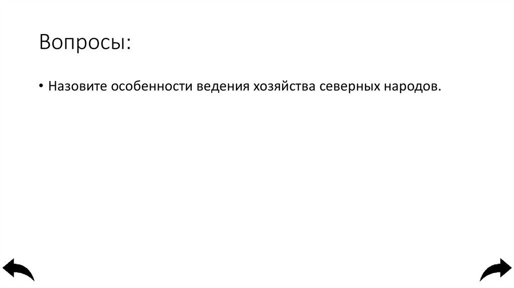 Вопросы:• Назовите особенности ведения хозяйства северных народов.