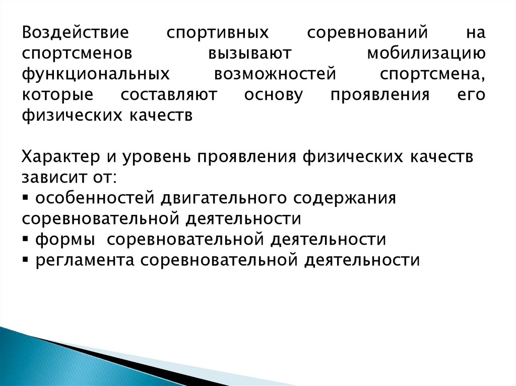 Особенности проявления физических и технических качеств спортсмена в условиях соревнования