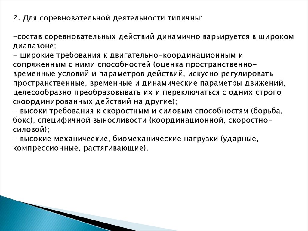 2. Для соревновательной деятельности типичны:-состав соревновательных действий динамично варьируется в широком
