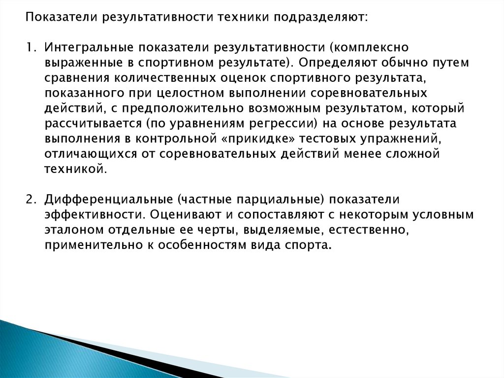 Показатели результативности техники подразделяют:1. Интегральные показатели результативности (комплексно
