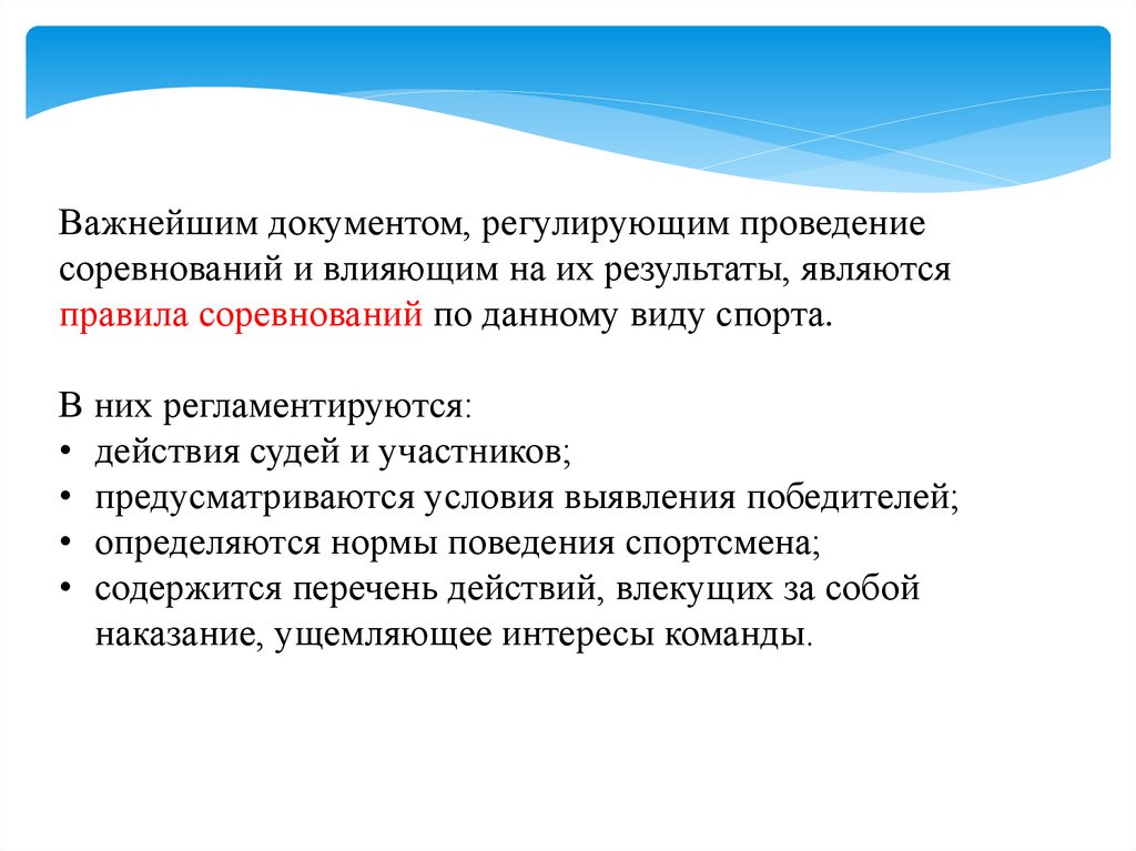 Важнейшим документом, регулирующим проведениесоревнований и влияющим на их результаты, являются
