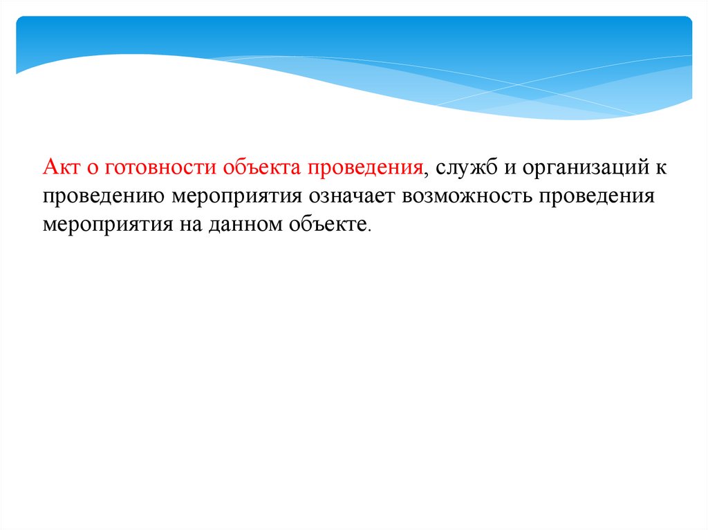 Акт о готовности объекта проведения, служб и организаций кпроведению мероприятия означает возможность проведения