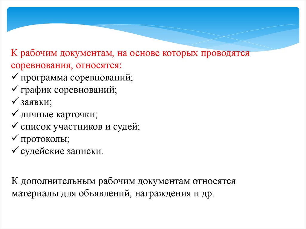 К рабочим документам, на основе которых проводятсясоревнования, относятся: