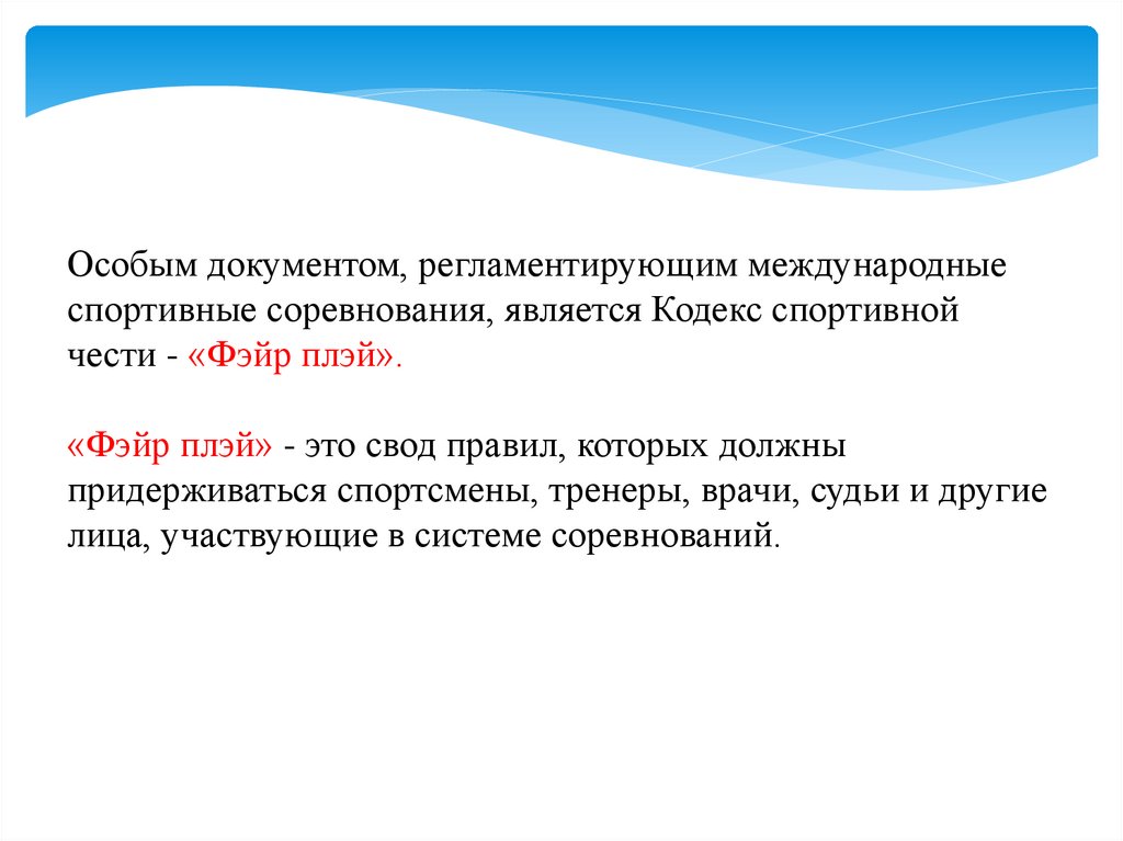 Особым документом, регламентирующим международныеспортивные соревнования, является Кодекс спортивной