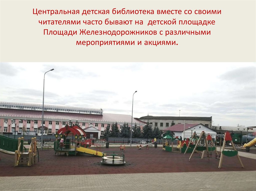 Центральная детская библиотека вместе со своимичитателями часто бывают на детской площадке